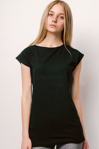 Фото товара 9181, черная удлиненная футболка из хлопка