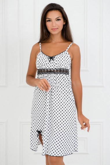 Фото товара 21871, белая ночная сорочка в черный горох